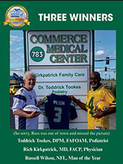 Dr. Rich Kirkpatrick was honored as “Best Doctor” in 2021, 2022, 2023 and 2024 while Dr. Tookes was recognized as “Best Podiatrist” 2021-2024 in The Daily News Readers’ Choice Awards.